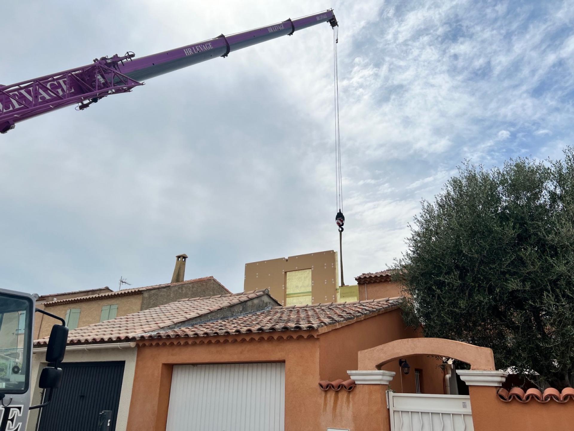 Nos clients à la Crau, récemment parents d'une deuxième petite fille, avaient plutôt choisis de faire une surélévation en traditionnel béton.